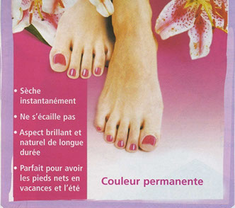 Après un limage et une élimination des callosités, on procède par le nettoyage des cuticules, un massage des pieds et une pose de vernis.